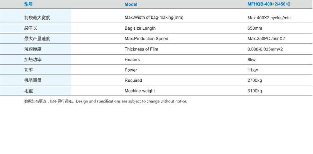 MFHQB-400X2/450系列伺服高速制袋機(雙道)